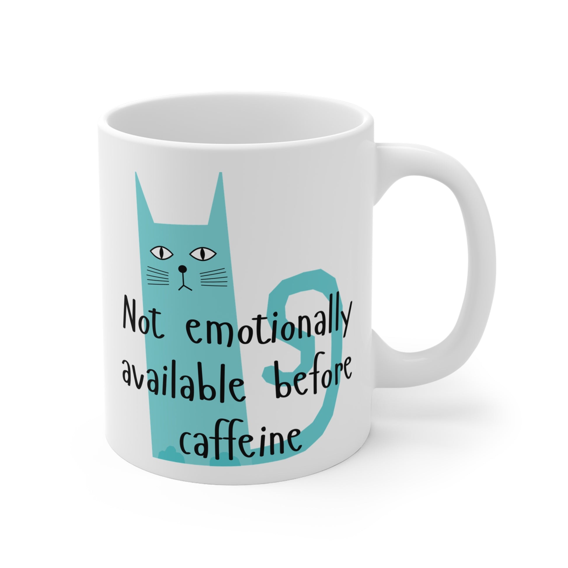 Funny Cat Mug - Not Emotionally Available Before Caffeine - 11oz Coffee Cup